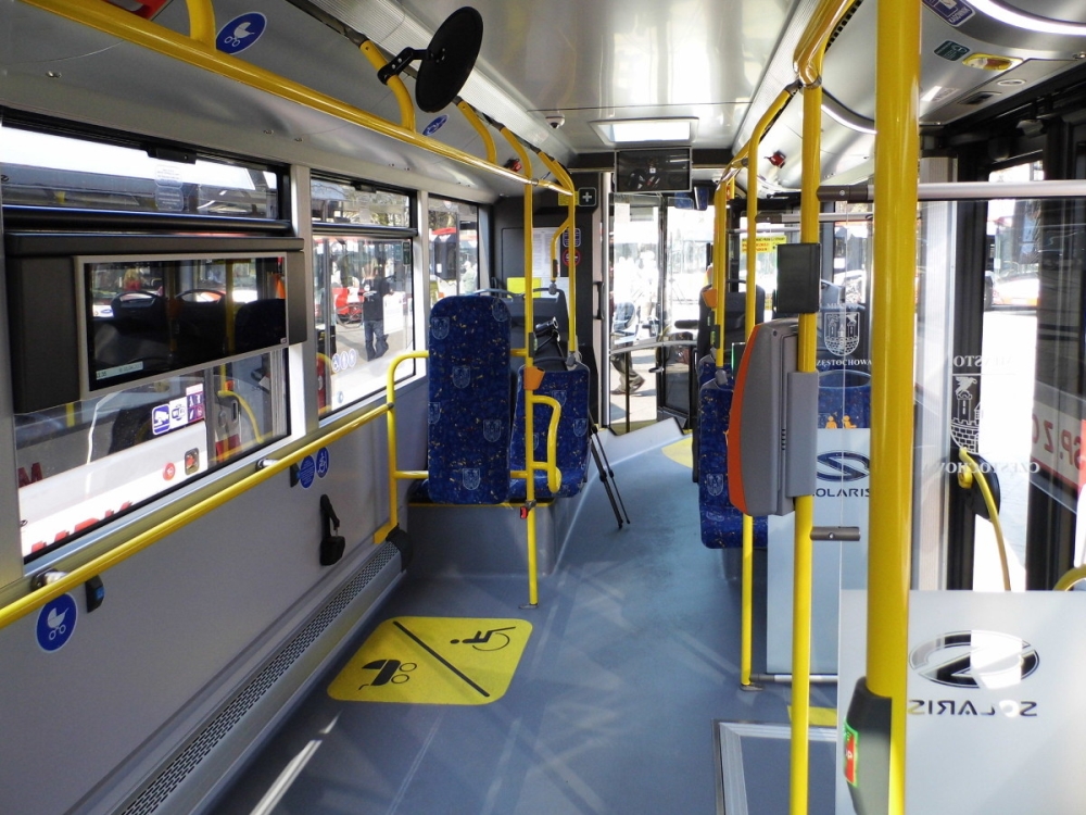Nadzór nad pasażerami sprawować będą bramki zliczające umieszczone w wejściach i pasywny monitoring wizyjny HD obejmujący także przestrzeń przed pojazdem, przy drzwiach i za pojazdem. Szkoda jedynie, że kamery dosyć ordynarnie wyróżniają się na bryle pojazdu, a uczestniczący w ceremonii pełnomocnik zarządu Solaris Bus & Coach Wiesław Cieśla zauważył, że w częstochowskiej malaturze nowe Solarisy prezentują się wyjątkowo nowocześnie.