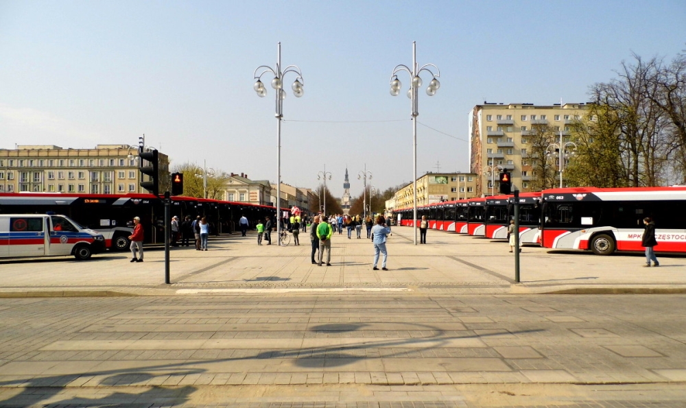 Częstochowa ma małą tradycję prezentowania na placu Biegańskiego zakupionych autobusów, co zapoczątkowano bodajże w latach sześćdziesiątych prezentując lśniące Ikarusy 556. I tak przez lata spęd odbywano kolejnymi seriami zakupów. Największym rozmachem cechowała się prezentacja 40 hybrydowych Solbusów, które w odmianie solowej i przegubowej nie zmieściły się na płycie placu, więc wiele z pojazdów ustawiono w pasażu środkowym alei Najświętszej Maryi Panny – znanego traktu pielgrzymkowego stanowiącego finalny odcinek podróży pątników. Czterdzieści Solarisów tylko w wersji 12-metrowej zmieszczono w całości przed historycznym Ratuszem.