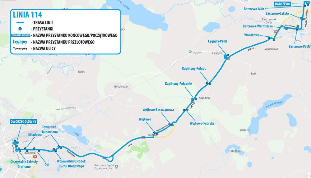 Burmistrz Barczewa poinformował, że mieszkańcy gminy będą mieli do dyspozycji blisko 20 kursów dziennie w postaci dwóch linii. Pierwsza z nich o numerze 114 kursować będzie na trasie Barczewo – Wrócikowo – Łęgajny – Kaplityny – Wójtowo – Olsztyn. Druga linia – o numerze 124 – połączy Barczewo – Wrócikowo – Łęgajny – Nikielkowo – Indykpol – Olsztyn.