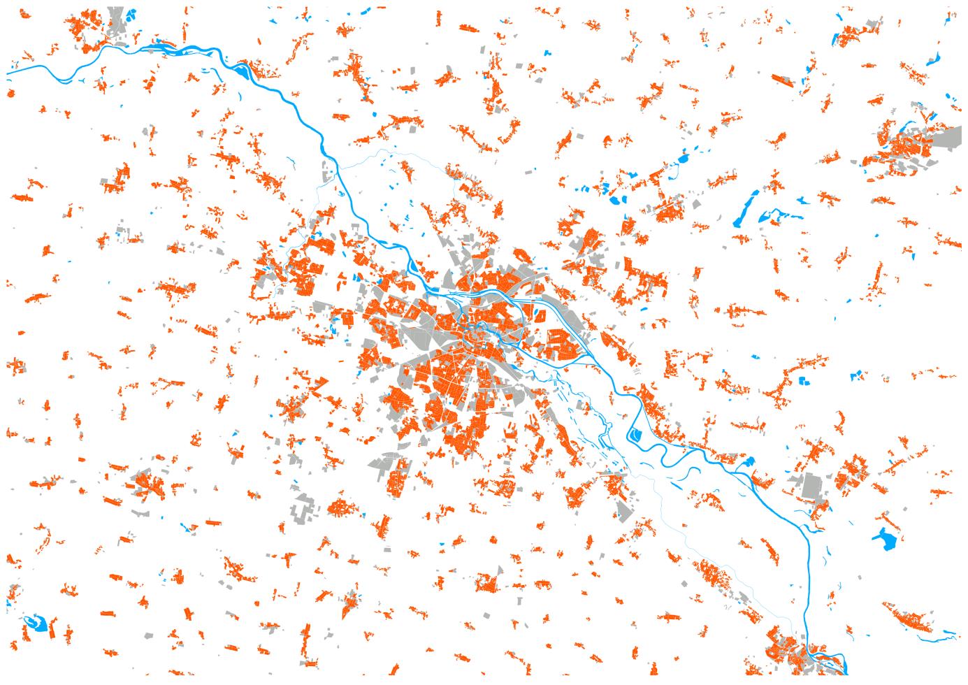 Zabudowa mieszkaniowa Wrocławia, opracował M. Florczak, na podstawie danych Europejskiej Agencji Ochrony ŚrodowiskaTymczasem w strefie podmiejskiej Warszawy przez ten czas osiedliło się prawie 150 tys. ludzi., okolicach Poznania – 80 tys., a na obrzeżach Gdańska prawie 70 tys. Wokół innych miast liczby są mniejsze ale również istotne.