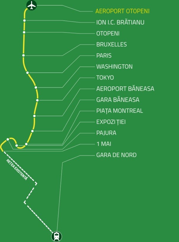 Podczas, gdy na odcinku północnym od kilku miesięcy trwa drążenie tuneli, na odcinku północnym Tokio - Lotnisko Otopeni trwają przygotowania. Pozwolenie na budowę pozyskano dla tego etapu w sierpniu 2024 roku, zaś roboty ruszyły dopiero w grudniu. Prace skupiają się dzisiaj głównie w rejonie przyszłej stacji metra Ion IC Brătianu. Wykonano 1260 m sześciennych wykopów ogólnych do poziomu górnej kondygnacji. Ten odcinek będzie miał 7,6 km długości oraz także sześć stacji Waszyngton, Paryż, Bruksela, Otopeni, Ion IC Brătianu i Otopeni Lotnisko.