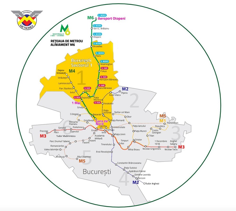 Budową nowej linii metra zajmuje się turecka firma Gülermak Ağır Sanayi İnşaat ve Taahhüt, która została liderem konsorcjum. W składzie znalazła się także rumuńska firma Somet. Nowa linia metra M6, która ma mieć docelowo 14,2 km długości i 12 stacji, zostanie poprowadzona jako odnoga istniejącej stacji metra M4 przy największym dworcu kolejowym w Bukareszcie – Gara de Nord. Realizację projektu podzielono na dwa etapy – pierwszy odcinek realizowany jest między stacjami 1 Mai i Tokio, zaś drugi między Tokio – Otopeni. Czas budowy zakontraktowano na 48 miesięcy – 4 lata.