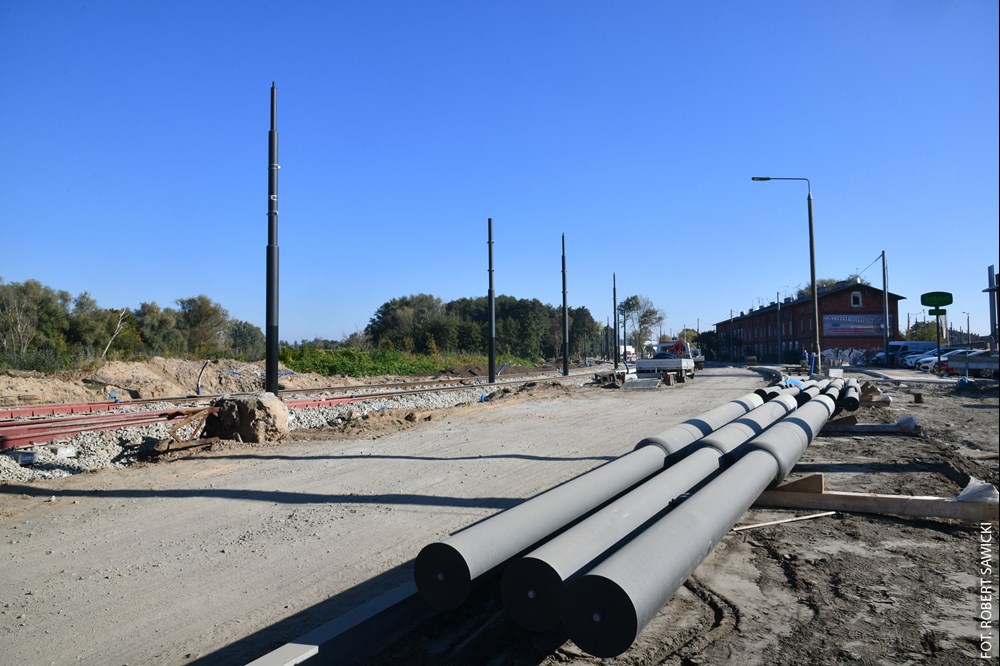 Prace trwają na niemal całym odcinku torowiska na ulicy Toruńskiej od wysokości al. Prezydenta L. Kaczyńskiego do ul. Równej. Wcześniej zdemontowano torowisko, sieć trakcyjną oraz sygnalizację świetlną, wykonano też odwodnienie i fundamenty pod słupy. Wytyczono także przebieg chodników i rowerowej drogi.