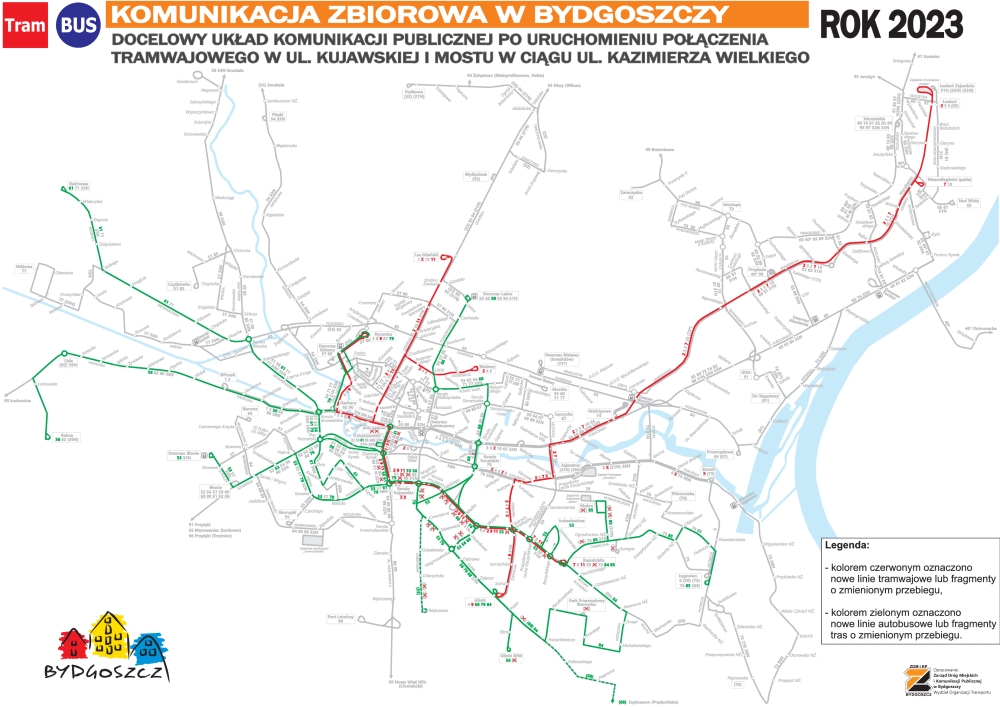 Jeszcze w tym roku planowane jest uruchomienie torowiska wzdłuż rozbudowywanej ul. Kujawskiej. Za kilka lat natomiast powstanie nowa przeprawa mostowa nad Brdą w ciągu ul. Kazimierza Wielkiego. Obie inwestycje zmienią dotychczasowy układ komunikacyjny w mieście. Od 18 września do 9 października miasto zaprasza do konsultacji społecznych wstępnej koncepcji nowego układu linii tramwajowych i autobusowych w Bydgoszczy.