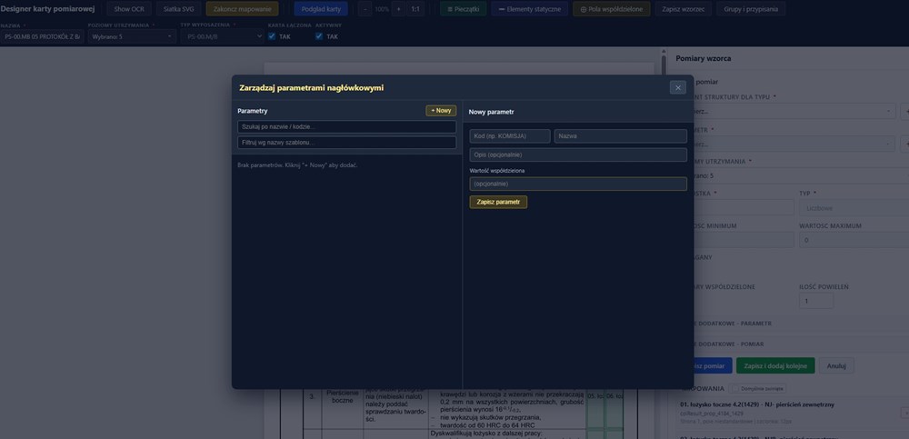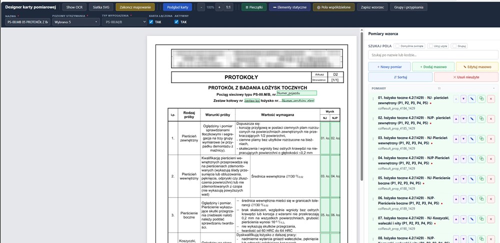 Obsługa papierowych kart pomiarowych w zakładach naprawczych taboru kolejowego generuje szereg problemów operacyjnych. Wąskie rubryki formularzy uniemożliwiają czytelne ręczne wpisanie danych — cyfry i wartości bywają trudne do odczytania, co prowadzi do błędów interpretacyjnych. Przy dużych flotach, gdzie każdy element wyposażenia wymaga osobnej karty, liczba dokumentów na jeden pojazd liczona jest w dziesiątkach, a ich przechowywanie i wyszukiwanie pochłania czas i zasoby.