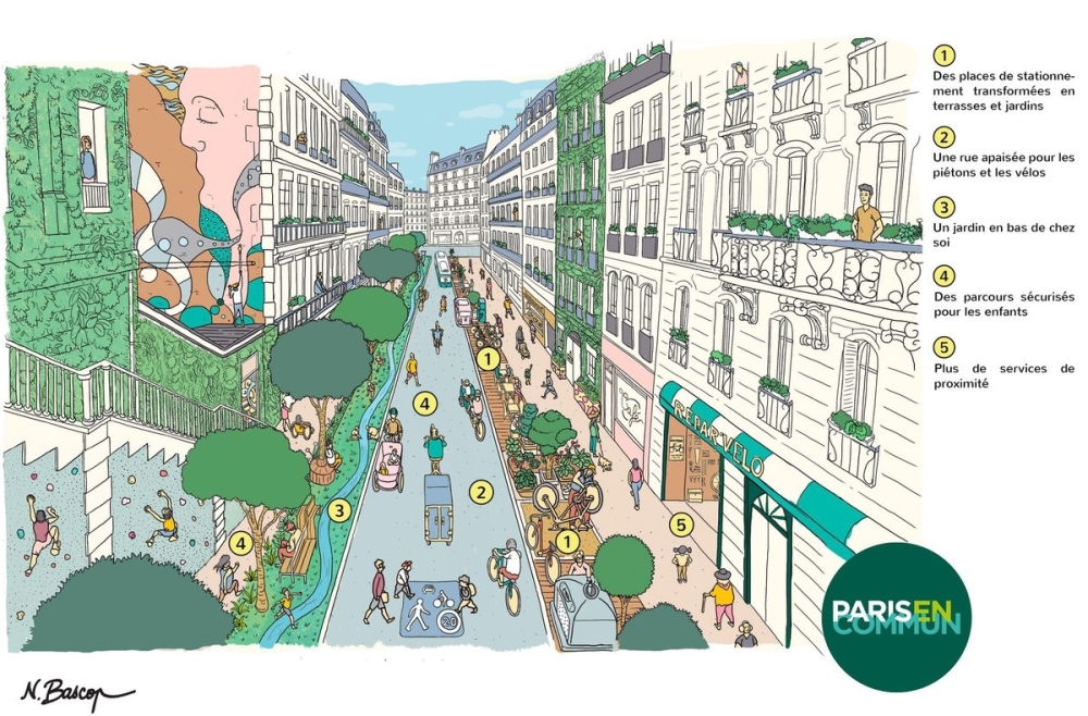 Ma to być kontynuacja dotychczasowych zmian wprowadzanych przez Hidalgo, związanych z uspokajaniem ruchu, rozbudową infrastruktury rowerowej i przebudową ulic. Obecna mer tłumaczy, że część zmian, np. organizacja śródmiejskich ulic, ma mieć stały charakter, a część, np. uspokajanie ulic przy szkołach, czasowy.