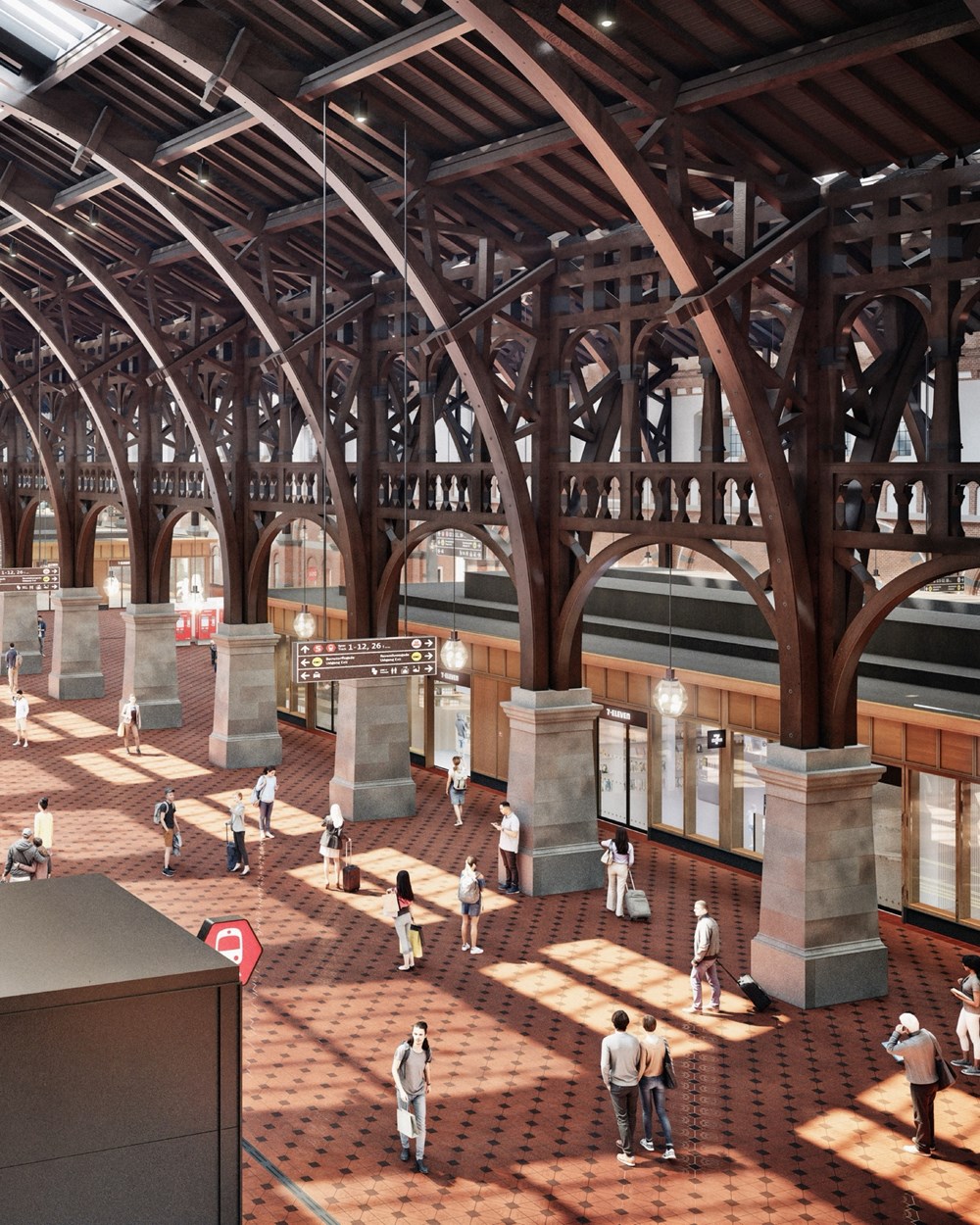 Inwestycja zaczyna się właśnie teraz, w kwietniu. Zakończenie kompleksowej modernizacji hali dworcowej jest planowane na 2028 rok. Hala zostanie podzielona na odrębną część przeznaczoną dla podróżnych oraz część handlową ze sklepami i restauracjami dla osób w podróży. Dzięki temu powstanie bardziej otwarta przestrzeń, w której łatwiej się będzie odnaleźć, a piękna architektura hali zostanie lepiej wyeksponowana. – Obecnie większość hali zajmują cztery lokale handlowe. Modernizacja obejmuje usunięcie dwóch lokali naprzeciwko peronów. Spowoduje to podział Dworca Centralnego na halę handlową i halę podróżną. Dzięki temu przestrzeń stanie się o wiele bardziej przejrzysta i otwarta – wyjaśnia Lars Gøtke, dyrektor Danske Statsbaner.