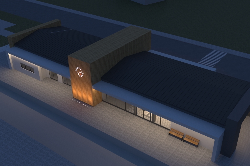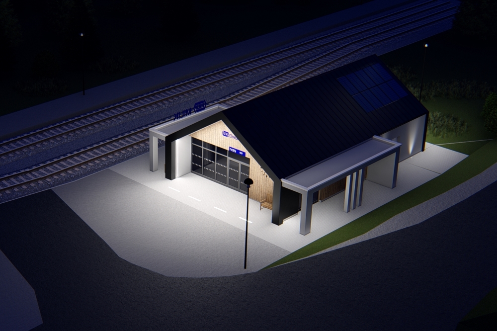 Metamorfozę przejdzie bezpośrednio otoczenie dworca, które zyska całkowicie nową aranżację. Po północnej stronie budynku powstanie wiata rowerowa wraz z miejscami do odpoczynku oraz uporządkowane zostaną tereny zielone. Natomiast po południowej stojaki rowerowe i niewielki parking samochodowy. Całość aranżacji uzupełnią inne elementy małej architektury takie jak ławki, kosze i oświetlenie.