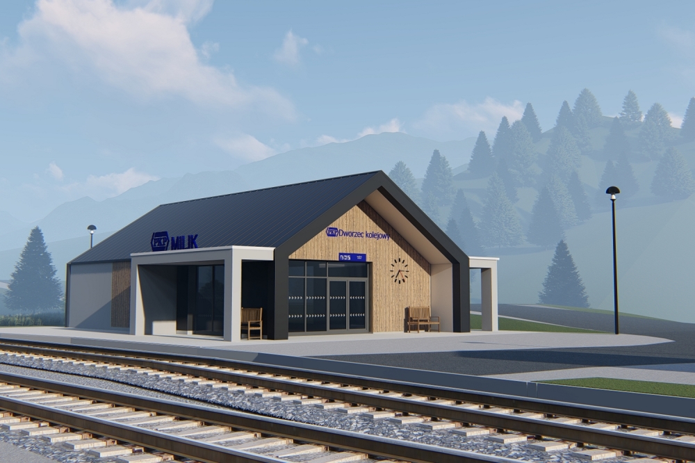 Nowoczesne i z charakteremWśród dworców, na których rozpoczęły się prace budowlane, są także obiekty budowane od podstaw. Są to niewielkie dworce w Miliku i Młodowie – minimalistyczne w bryle, łączą w sobie styl nowoczesny z architekturą górską. Ich cechą charakterystyczną są wielkopowierzchniowe przeszklenia w elewacji, w miejscach, gdzie wewnątrz budynku zaprojektowano poczekalnię. W Miliku elewacja będzie częściowo wykończona wyglądającą niczym drewno bazaltową okładziną, natomiast w Młodowie cegłą. W obydwóch bryłach zadbano o przestrzenie do oczekiwania na zewnątrz, w postaci specjalnych wiat (Milik) oraz dzięki wysunięciu dachu poza obrys podstawy budynku (Młodów). Dworce będą posiadały również delikatną iluminację nocną.