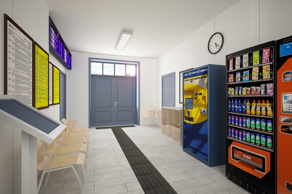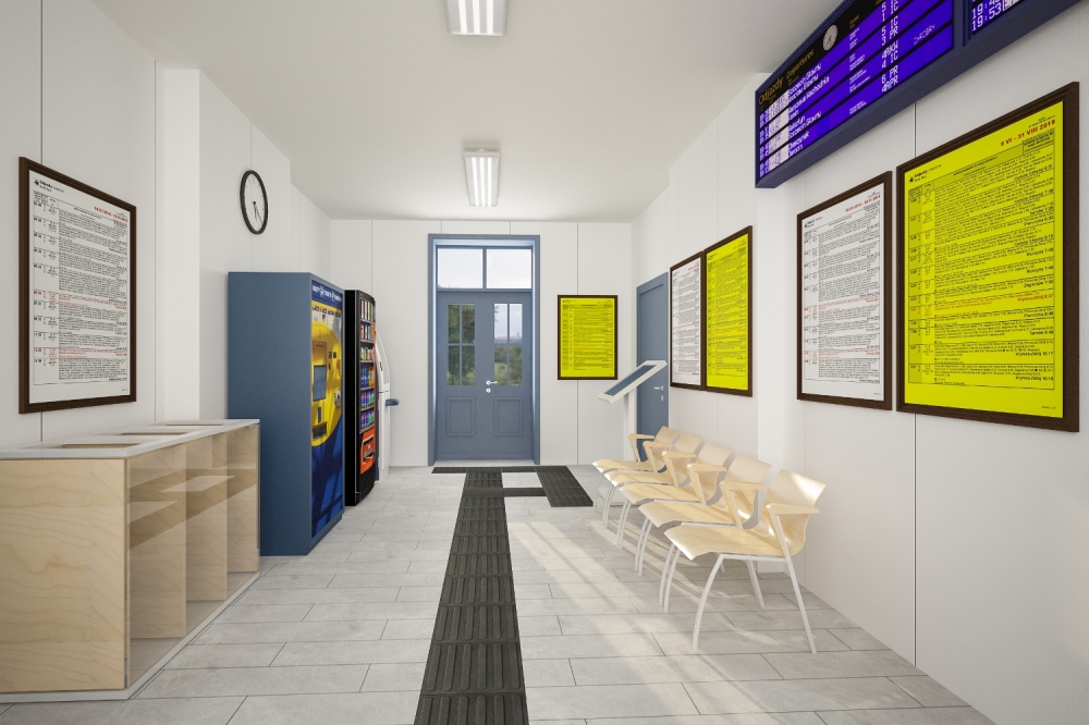 Na parterze każdego z dworców zaprojektowano poczekalnie utrzymane w odcieniach bieli i szarości. Podróżni znajdą w nich ławki, gabloty oraz elektroniczne tablice przyjazdów i odjazdów pociągów. W ich sąsiedztwie zlokalizowano toalety, a pozostałe pomieszczenia zostaną przeznaczone na potrzeby spółek kolejowych.