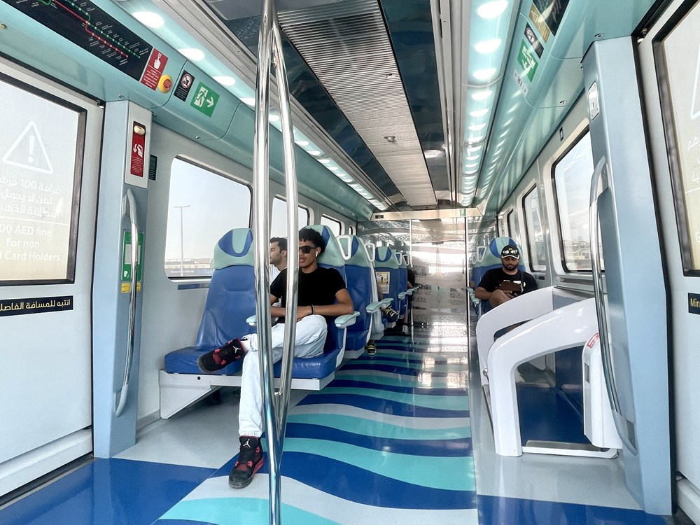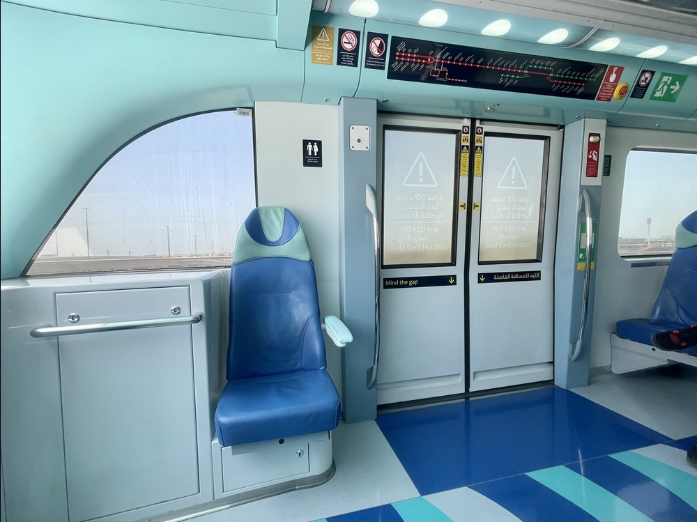 Ponieważ pierwsza klasa, podobnie jak ta przeznaczona dla kobiet i dzieci, zlokalizowana są na krańcach pociągów dostajemy też lepsze widoki – metro w Dubaju jest automatyczne i nie ma w nim kabiny maszynisty. Niestety fotele w starszych, japońskich składach są tu ustawione bokiem do kierunku jazdy co nieco psuje efekt. Jeśli będziecie mieli czas i okazję lepiej poczekać na pociąg od Alstomu. Nam pierwszą klasą jeździło się bardzo dobrze – przejechanie całej trasy pozwala spokojnie przyglądać się miastu, a to dla turysty duży atut. Niestety na znacznej długości czerwona linia metra biegnie wzdłuż wielopasmowej autostrady po której samochody poruszają się z reguły szybciej niż metro...