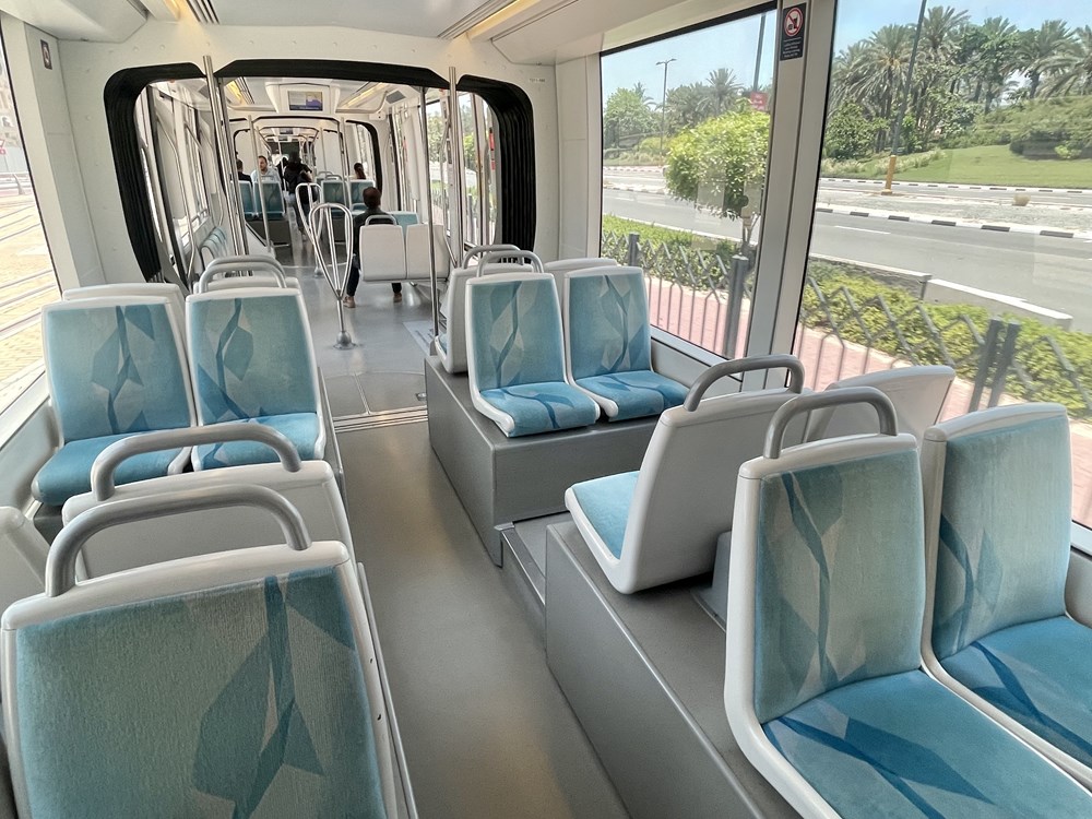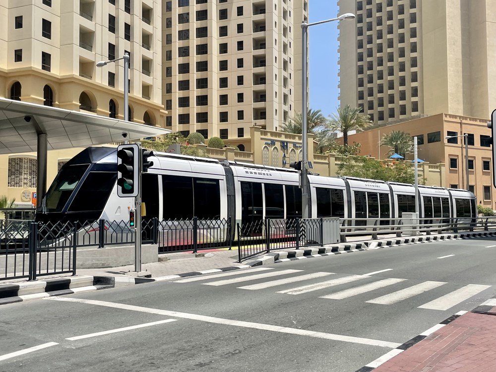 na otwartej w 2014 pierwszej i jak dotąd jedynej linii tramwajowej w Dubaju. Długość linii wynosi 10,6 km, na trasie zlokalizowano 11 przystanków, które podobniej jak stacje metra są klimatyzowane. Trasa obsługiwana jest przez dostarczone przez Alstom składy Citadis, które zasilane są z trzeciej szyny. Tutaj również skład podzielony jest na trzy klasy, ale w odróżnieniu od metra nie są one oddzielone drzwiami.