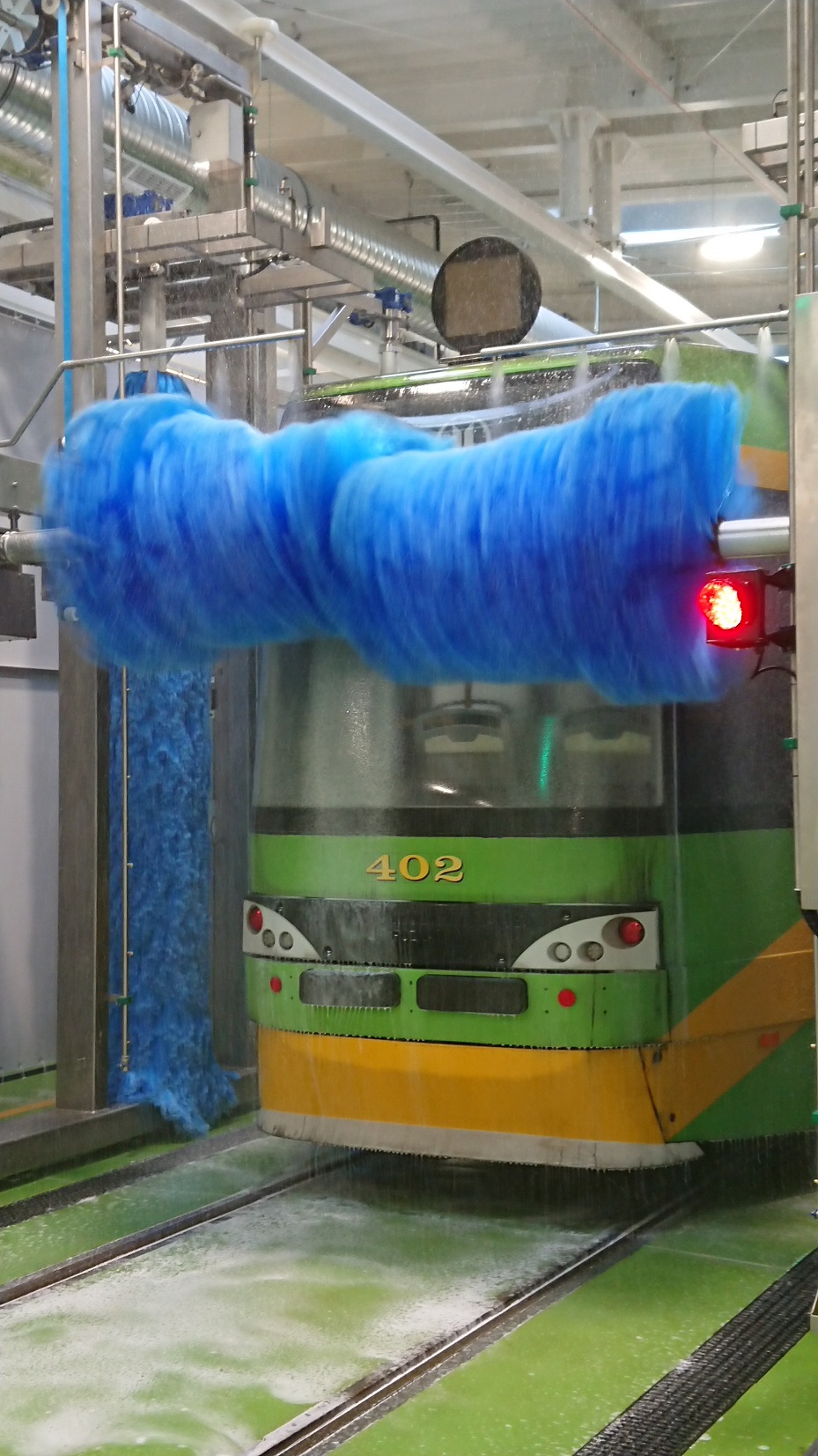 Z kolei w Zajezdni „Forteczna” została zainstalowana Myjnia pół-portalowa SULTOF – PROTEUS, składajaca się z dwóch pół-portali poruszających się obustronnie wzdłuż stojącego pojazdu.
