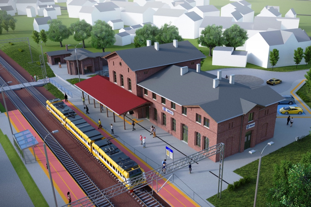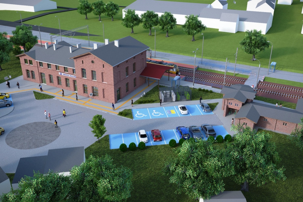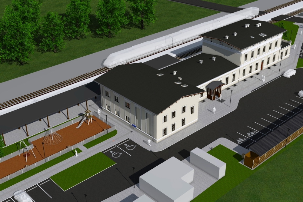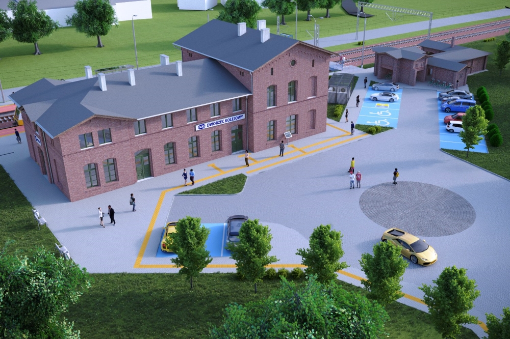 mat. PKP SAZmienią się funkcje dworca. Hol główny będzie ogólnodostępnym pomieszczeniem, ze sprzedażą biletów. Przewidziano toalety. Oprócz tego zaplanowano komisariat policji, gminne biuro obsługi klienta. Lokale PKP PLK i TK Telekom zostaną utrzymane. Na piętrze przewidziano pomieszczenia biurowe, salę konferencyjną i pomieszczenie dla stowarzyszenia. W piwnicach powstanie przestrzeń magazynowa dla UMiG, Domu Kultury i Drogowców. Obiekt zostanie dostosowany do potrzeb osób niepełnosprawnych.