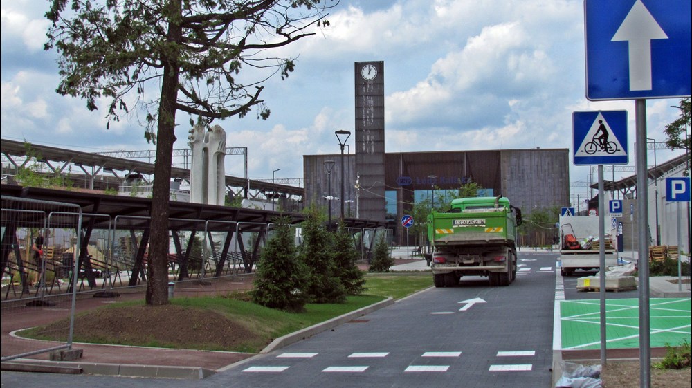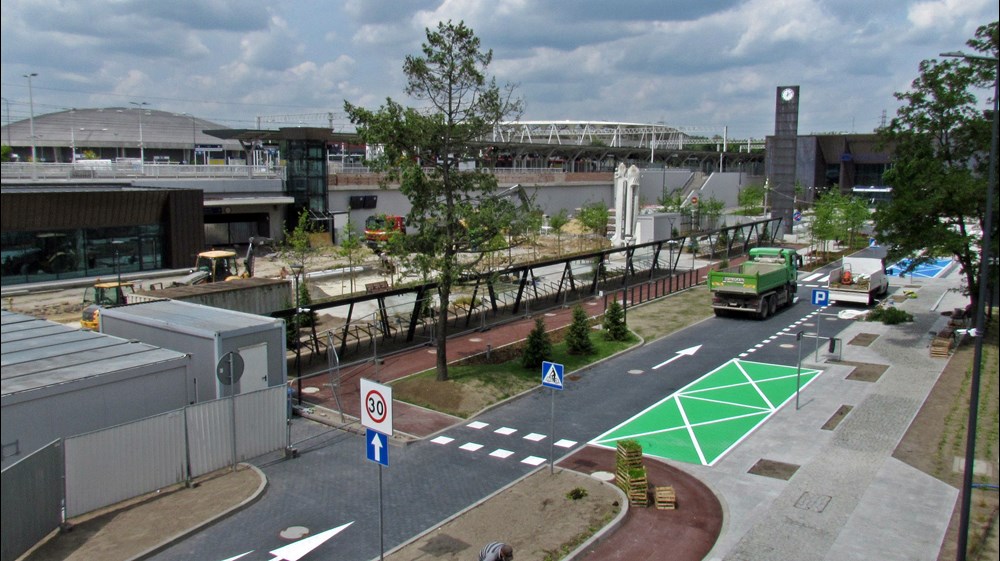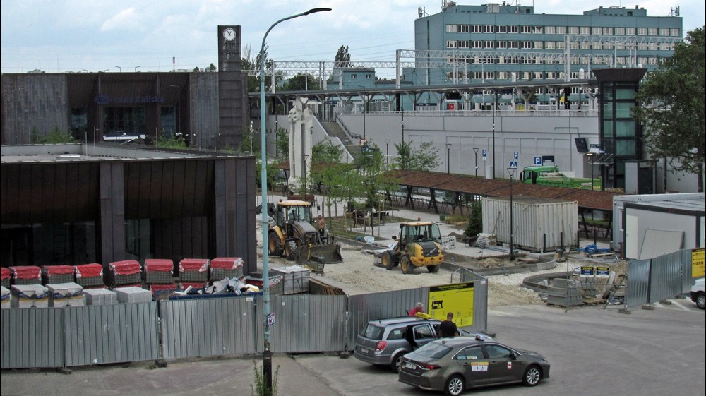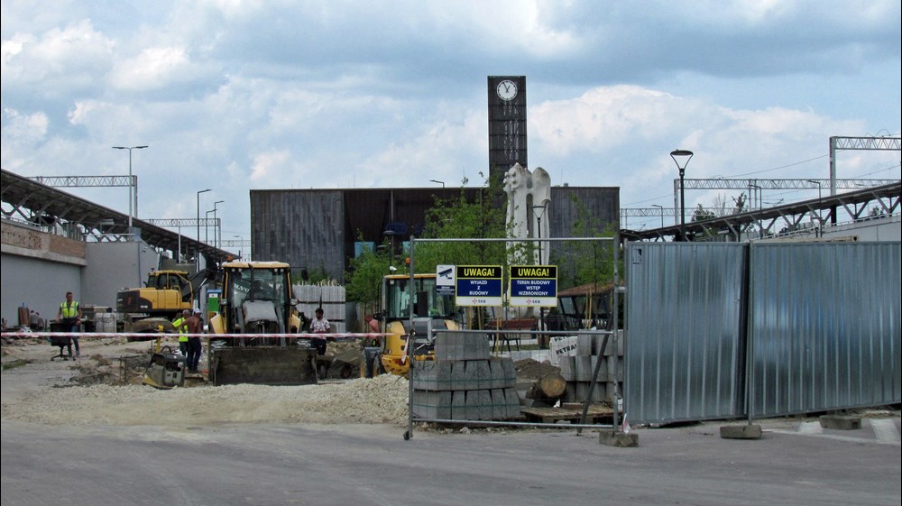 Chodzi konkretnie o zachodnią część dworcowego placu. Przed 17 czerwca znajdował się tam kontenerowy dworzec tymczasowy. Po jego usunięciu rozpoczęły się prace ziemne przy budowie chodnika, zieleńców oraz jezdni.