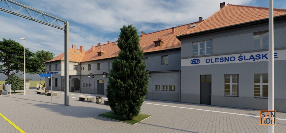 Przedmiotem zamówienia jest przebudowa dworca kolejowego Olesno Śląskie, leżącego przy linii kolejowej nr 143 Kalety – Wrocław Mikołajów. Obiekt, wybudowany w latach 1922-1923, znajduje się w ewidencji zabytków. Południowo-wschodnia część budynku jest w całości nieużytkowana, w pozostałej znajdują się restauracja oraz lokale mieszkalne. Zachowały się nieliczne detale architektoniczne.