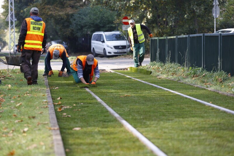 – Pielęgnacja wygląda podobnie jak pielęgnacja zwykłego trawnika – mówi Wojciech Tuszkowski właściciel firmy WT Bonsai. – Fakt, że przejeżdża tu tramwaj wiele nie zmienia. Trzeba nawozić i kosić, a dzięki temu jest ciszej, trawa pochłania wodę, reguluje proces jej wydalania, stworzy się tu blisko torów mikroklimat, nie mówiąc już o estetyce.