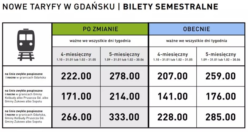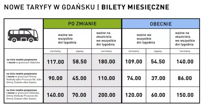 Każdy pasażer korzystający z biletu miesięcznego, czyli nieograniczonej liczby przejazdów autobusem, tramwajem oraz SKM/PKM w Gdańsku zapłaci dziennie zaledwie 3,9 zł, czyli 117 zł miesięcznie. Pasażerowie posiadający imienny bilet okresowy ZTM załadowany na Gdańską Kartę Mieszkańca ze zdjęciem nadal będą mogli korzystać na terenie miasta, oprócz autobusów i tramwajów, również z pociągów SKM i Polregio.