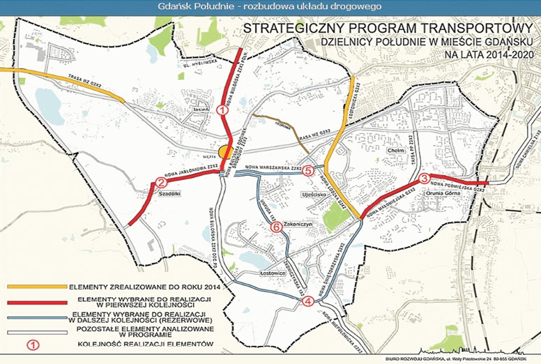 - budowę lub przebudowę odcinków ulic w tym między innymi: Myśliwska, Nowa Wołkowyska, Myśliwska Południowa, Stolema, Kartuska, Limbowa, łącznice węzła z Armii Krajowej, Nowa Warszawska, Nowa Jabłoniowa,