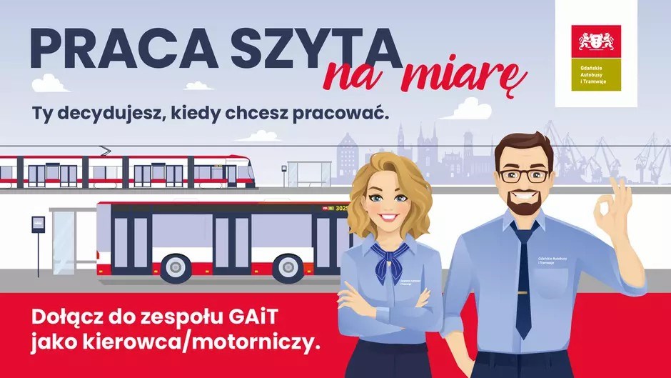 Gdańskie Autobusy i Tramwaje zachęcają osoby poszukujące nowych wyzwań zawodowych do pracy w charakterze kierowcy/kierowczyni autobusu lub motorniczego/motorniczej tramwaju. Osoby bez niezbędnych uprawnień mogą je zdobyć podczas bezpłatnych kursów organizowanych przez GAiT.