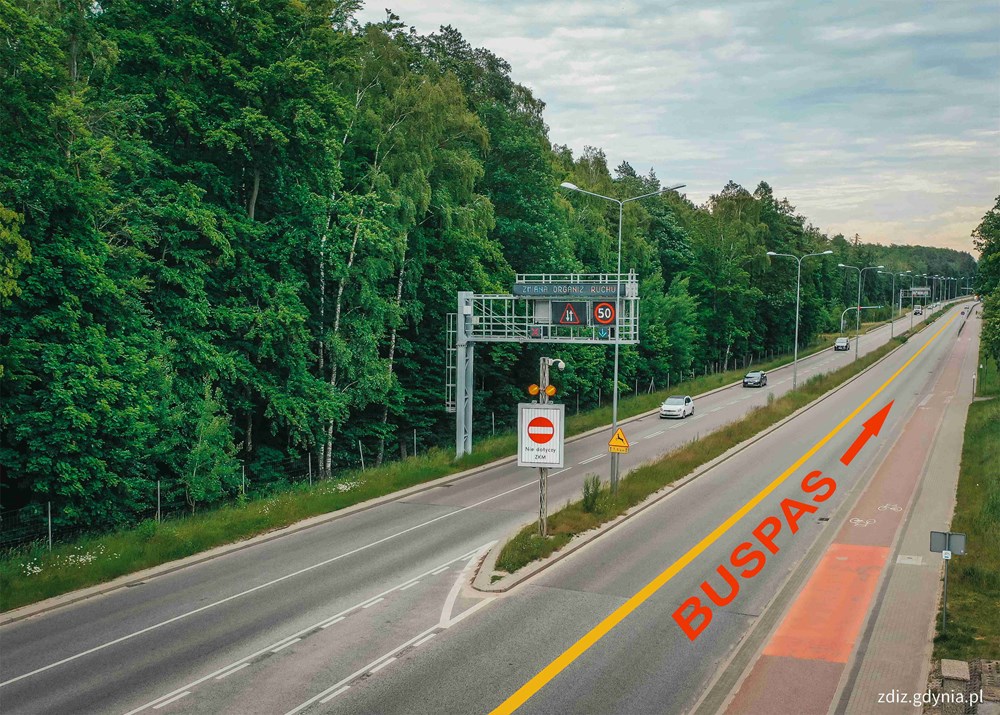 W związku z przygotowaniami do podłączenia nowo budowanej drogi do ul. Chwarznieńskiej niezbędny będzie demontaż urządzeń odpowiadających dotychczas za funkcjonowanie kontrapasa, a na odcinku realizowanych prac będzie obowiązywała maksymalna dopuszczalna prędkość jazdy do 50km/h. Buspas na tym obszarze zostanie uruchomiony na odcinku od przystanku Okrężna 1 do pętli autobusowej na ulicy Sosnowej na Witominie w kierunku centrum miasta.