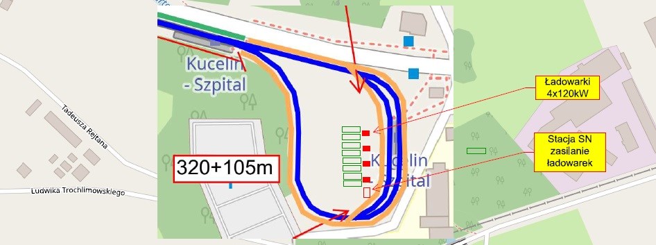 W przypadku linii na Kucelin tworzony PFU ma uwzględnić modernizację torowiska na odcinku od ulicy Gilowej do pętli Kucelin. To ponad 1,3 kilometra trasy. Ponadto przebudowana zostanie sama pętla, natomiast w jej środku ulokowane zostaną miejsce postojowe wraz z ładowarkami dla autobusów elektrycznych. Zamawiający planuje, że w tym miejscu pojawią się cztery podwójne ładowarki, każda o mocy 120 kW (2x60 kW), co umożliwi ładowanie maksymalnie ośmiu autobusów jednocześnie.