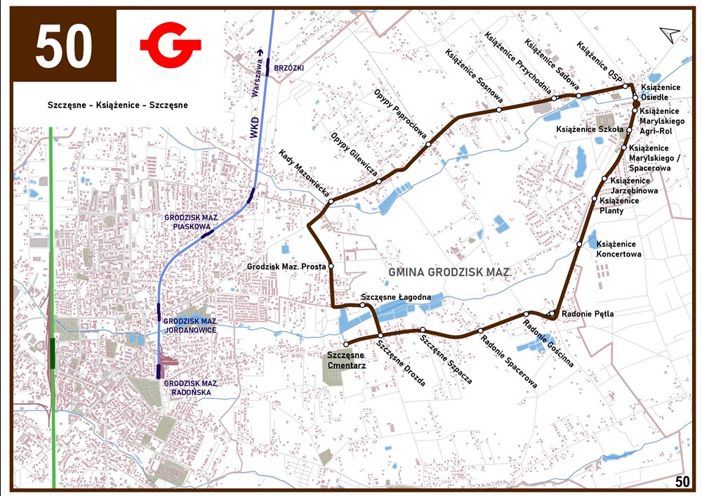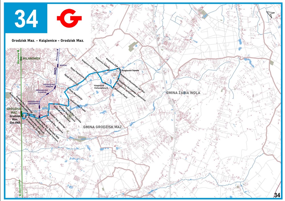 Uzupełnieniem linii 32 i 33 na trasie Książenice – Grodzisk Maz. w godzinach szczytu są obecnie kursy linii 50. W przyszłości (po oddaniu ulicy Cichociemnych) planowane jest zastąpienie linii 50 w obecnym kształcie nową linią numer 34 (całotygodniową), która obsłuży także przystanki na ulicy Kijowskiej, zapewniając przy tym szybki dojazd do 🚈stacji PKP i WKD. W Książenicach autobusy linii 34 GPA planuje skierować jednokierunkową trasą ulicami Mazowiecką > Cichociemnych > Marylskiego > Mazowiecką. Dzięki temu autobusy linii 32, 33 i 34 w kierunku Grodziska Maz. będą odjeżdżać z tych samych przystanków i na zmianę w równych odstępach (w godz. szczytu co 15 min).