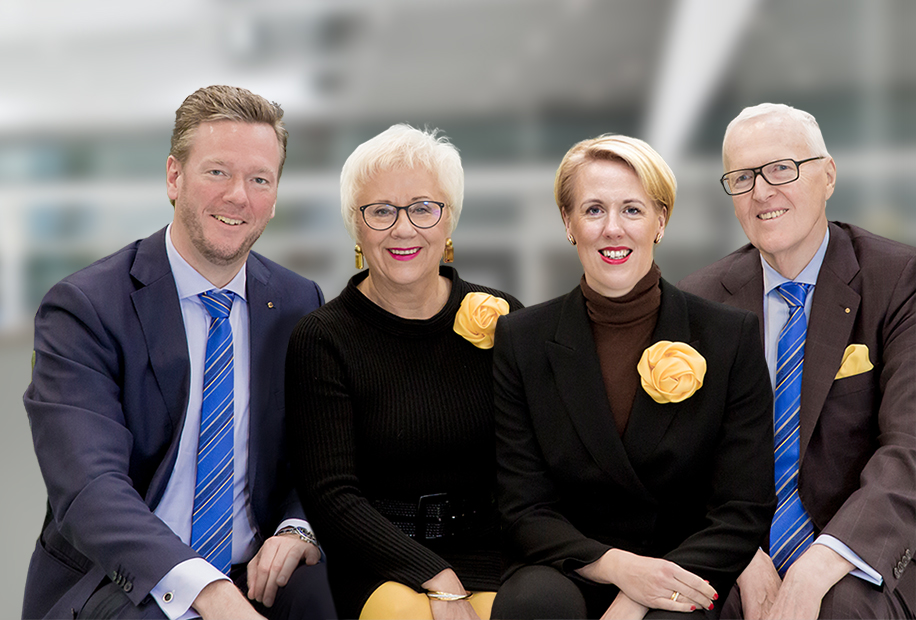 Philip Harting, Margrit Harting, Maresa Harting-Hertz oraz Dietmar Harting, druga i trzecia generacja prowadząca Grupę Technologiczną HARTING (od lewej do prawej)
