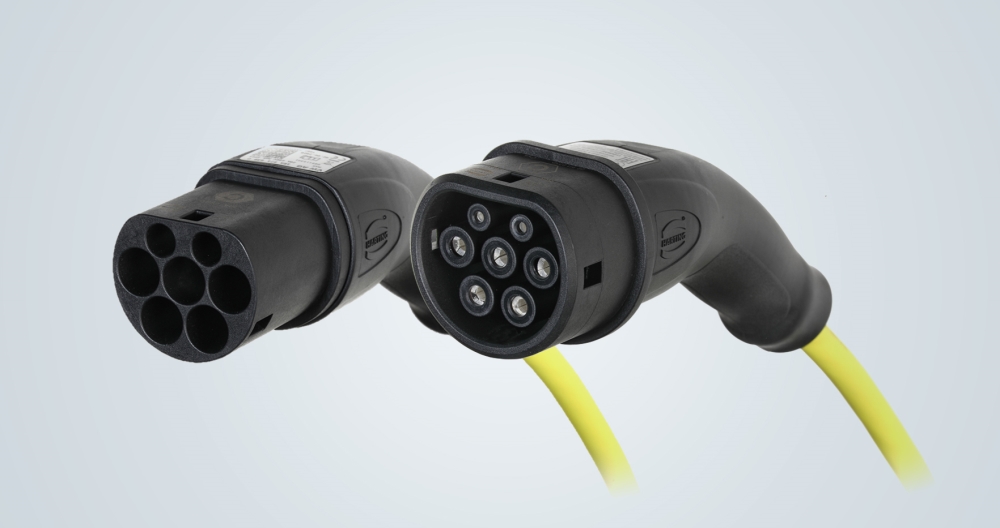 Rozwiązania łączeniowe są głównym obszarem działalności HARTING: Na zdjęciu przewody ładowania typu Mode 3 wytwarzane dla Volkswagen modular e-drive system (MEB)
