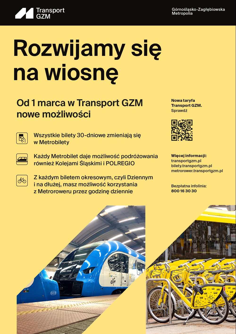 Z taryfy Transport GZM znikają dotychczasowe bilety 30-dniowe i „kolorowe” Metrobilety. Wszystkie bilety 30-dniowe zmienią się w Metrobilety, a każdy Metrobilet daje możliwość podróżowania również Kolejami Śląskimi i POLREGIO. Do tego dochodzi uruchomiony kilka dni temu Metrorower, z którego posiadacze wszystkich biletów okresowych mogą korzystać bez dodatkowych opłat przez 60 minut dziennie. Autobusami, tramwajami, trolejbusami, koleją i Metrorowerami.