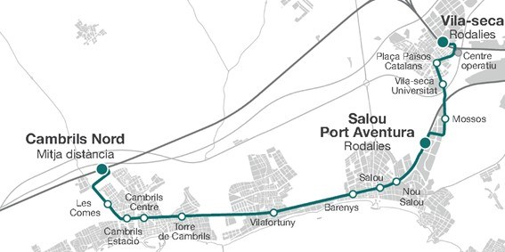 Odcinek Cambrils Nord – Vila-seca będzie miał długość 14 km i 14 przystanków. Wzdłuż trasy powstanie również nowa infrastruktura dla pieszych i rowerzystów. Do obsługi pierwszego odcinka pozyskanych przez Ferrocarrils de la Generalitat de Catalunya (FGC) ma zostać siedem tramwajów o pojemności ok. 210 pasażerów. Katalonia jest w trakcie pozyskiwania dofinansowania na zakup taboru. Zakup wyceniono na 38,5 miliona euro.