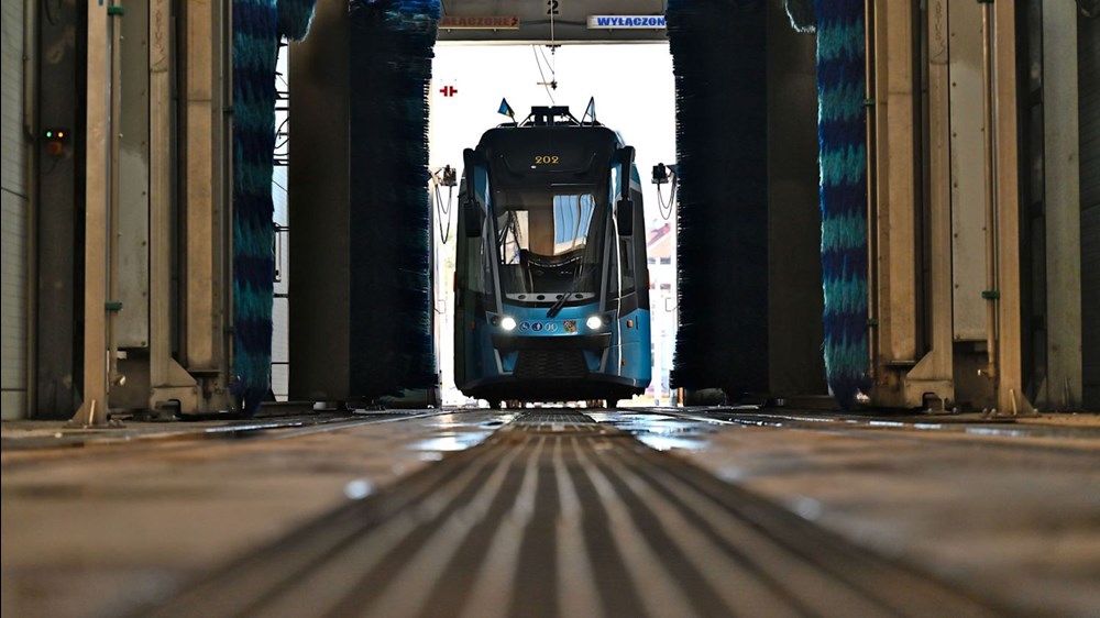 MPK Wrocław zdradza, jak przebiega proces mycia wagonów tramwajowych. Pojazdy są myte w zajezdni Borek, a cały proces trwa około ośmiu minut.