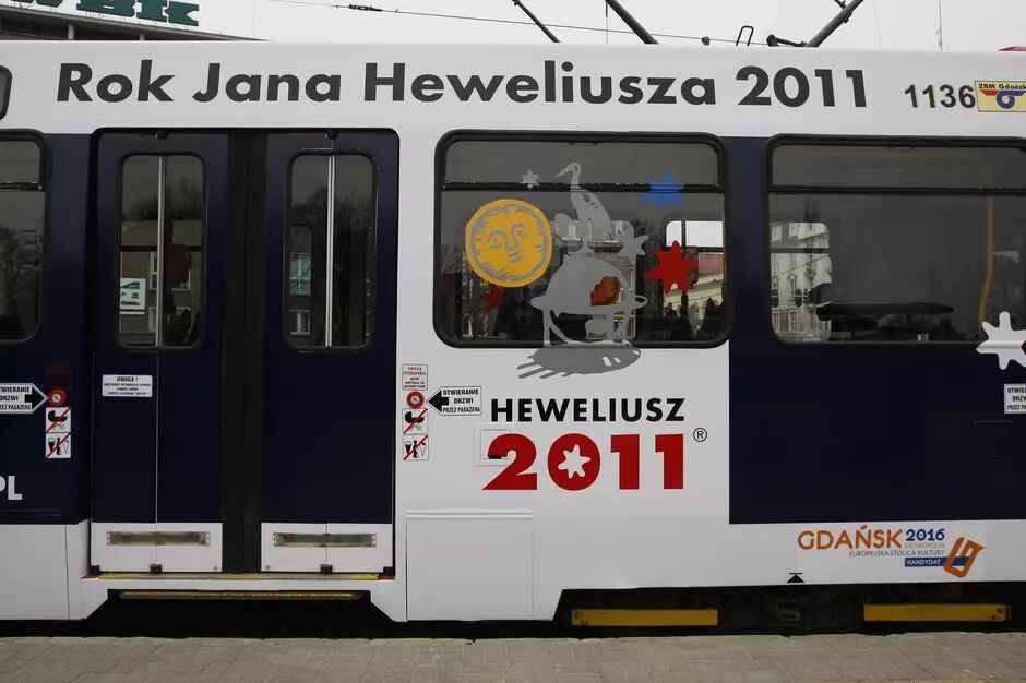 Od powołania wspomnianej komisji w 2019 roku, na bokach pojazdów szynowych GAiT zrealizowano 20 różnorodnych projektów. Ale i wcześniej po mieście jeździły tramwaje na specjalną okazję. Najstarszy projekt, którego ślady znaleźliśmy w archiwum fotograficznym gdansk.pl, powstał w 2011 roku z okazji 400 rocznicy urodzin gdańskiego astronoma Jana Heweliusza.