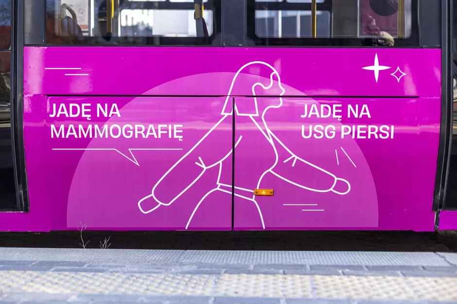 Także w 2024 roku po mieście kursował różowy tramwaj z inicjatywy Fundacji OMEA Life. Naszkicowana na środku składu kobieta maszerowała na USG piersi i mammografię.