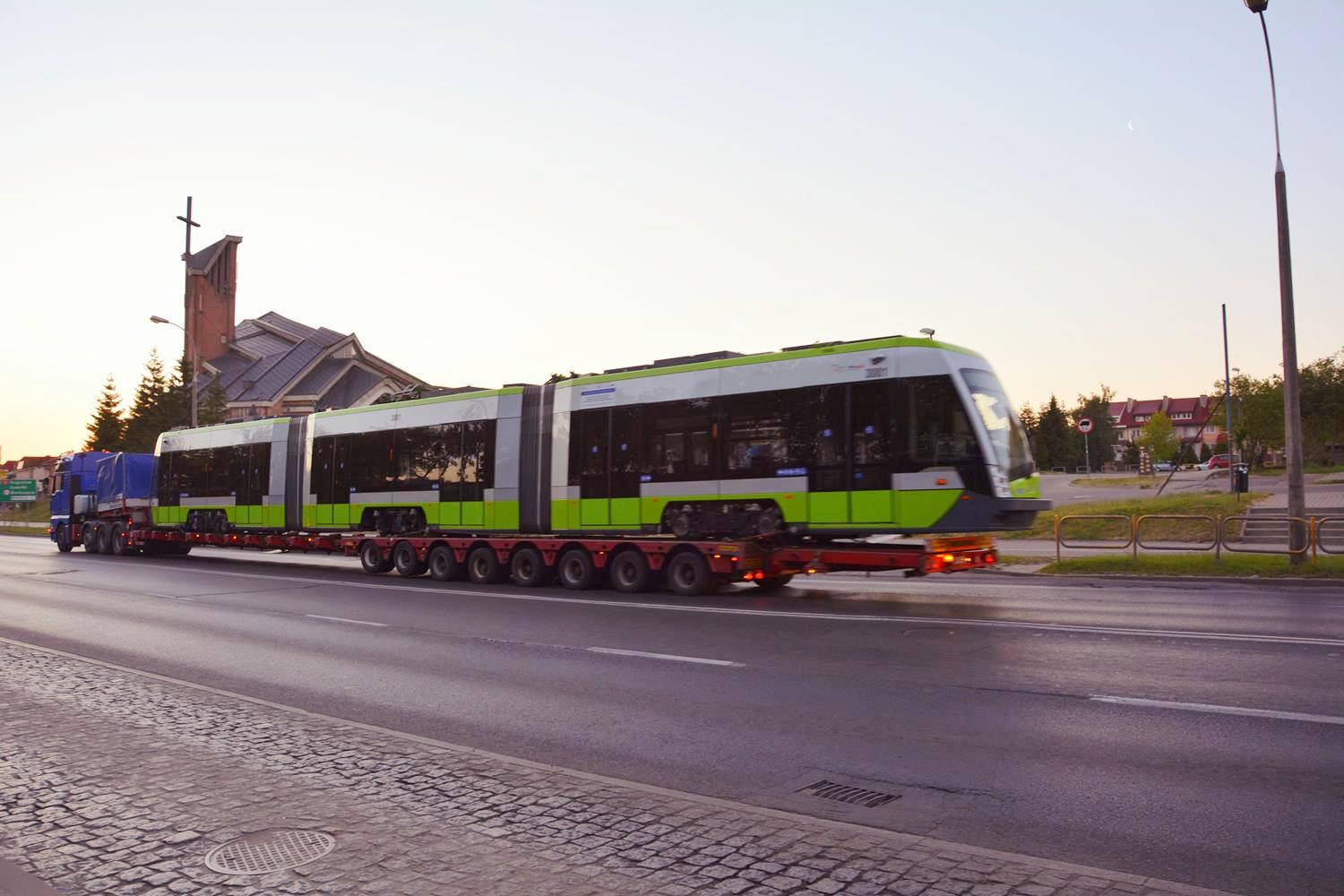 Równo o czwartej rano do Olsztyna wjechał specjalny transport tramwaju Solarisa Tramino. W pełnej obstawie nadzoru ruchu i miłośników komunikacji miejskiej laweta z pojazdem podążyła w kierunku zajezdni tramwajowej, gdzie zakończył się pierwszy etap dostawy z piętnastu zaplanowanych.