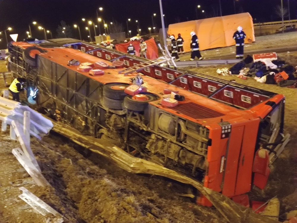 Do katastrofy rejsowego autobusu kursującego pomiędzy Polską a Ukrainą doszło przed północą. Pojazd wpadł do rowu znajdującego się przy autostradzie A4, przy którym jest zjazd z autostrady. Siła spadku i uderzenia była bardzo duża.