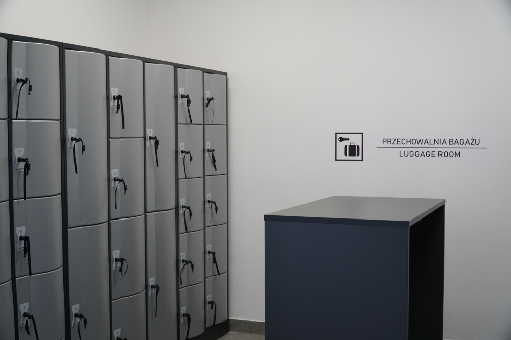 Na parterze budynku znajdują się również toalety i przechowalnia bagażu. W samoobsługowych szaflach można zostawić bagaż, zarówno mniejszy, jak i duże torby i walizki. Aby skorzystać z szafki należy posiadać monetę 5 złotową, którą wrzucamy do mechanizmu zamykania szafki.