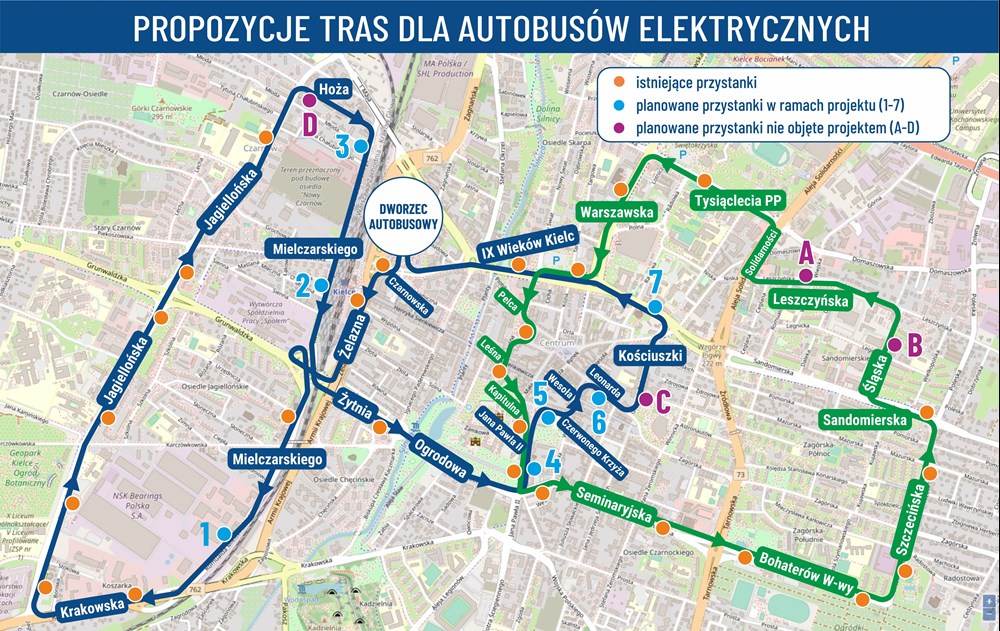 Projekt obejmuje zakup pięciu autobusów elektrycznych wraz z infrastrukturą ładowania oraz uzupełnienie sieci przystanków o dodatkowe 7 sztuk.
