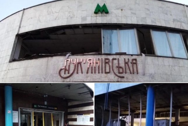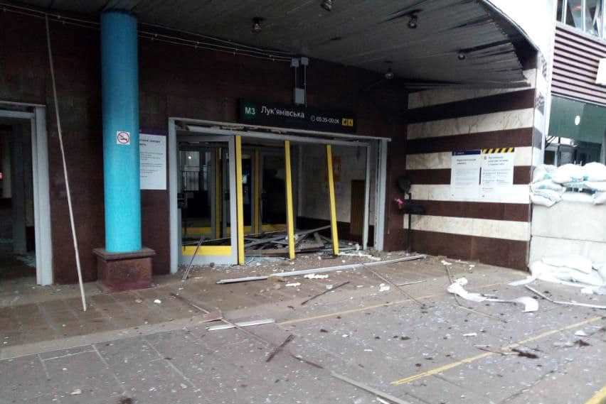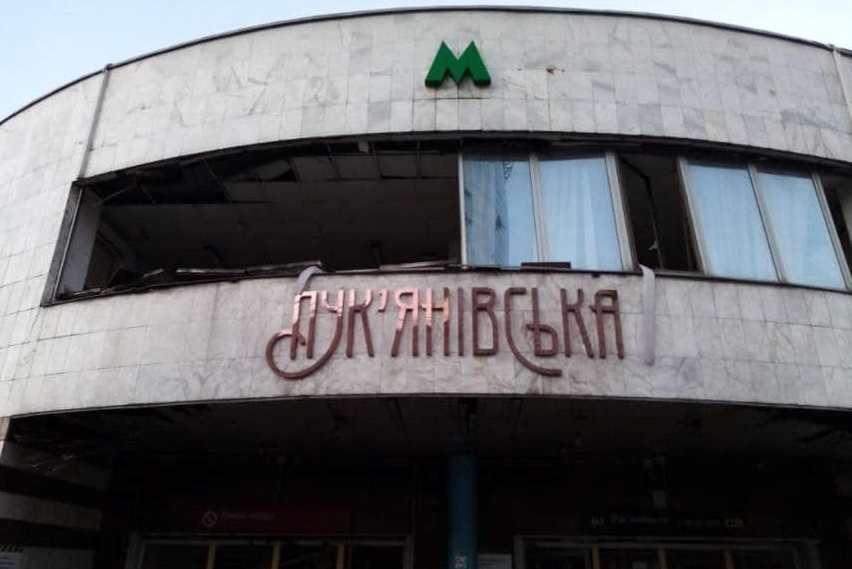 Jak poinformowało dziś (15 marca) Metro Kijowskie, w wyniku fali uderzeniowej po wybuchu uszkodzona została fasada pawilonu wejściowego i pomieszczenia służbowe na stacji Łukjaniwśka na zielonej linii. Pociągi przejeżdżają przez stację bez zatrzymania. Nie ma informacji o rannych i ofiarach.