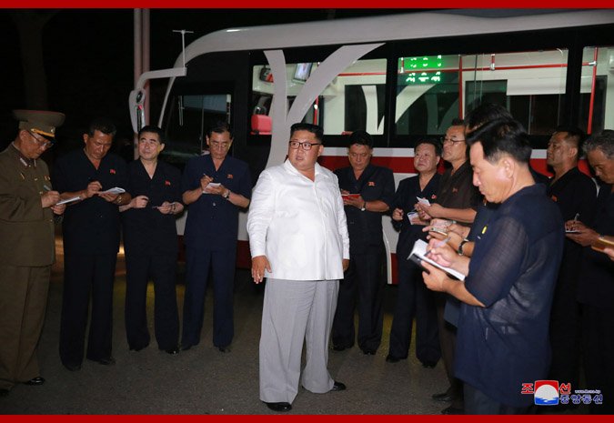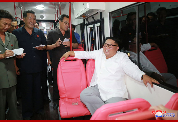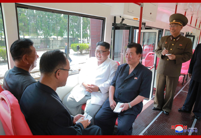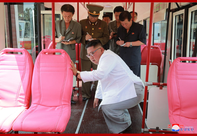 Kim Dzong Un podziękował pracownikom za ich oddanie. Następnie w nocy osobiście przewodził próbnej eksploatacji nowego tramwaju, jak i nowego trolejbusu. Jak donosi agencja, przywódca zauważył w tramwaju wyższą jakość wykończenia, poprawiony wygląd, obniżenie poziomu hałasu i drgań. Wyraził też przekonanie, że mieszkańcy będą wielce zadowoleni, korzystając z wyprodukowanych w kraju tramwajów i trolejbusów. Jak metaforycznie stwierdził Kim Dzong Un, partia byłaby gotowa nawet do sprowadzenia gwiazdy z nieba, „gdyby tylko tego zapragnęli obywateli”. Jednocześnie, jak deklarował przywódca, było mu ciężko na sercu, gdy musiał patrzeć na stare środki transportu, które sprawiały wiele niedogodności mieszkańcom i przyczyniały się do wzrostu liczby taksówek na ulicach.