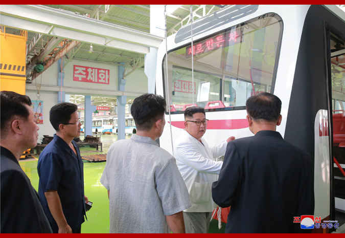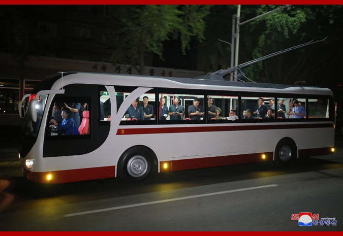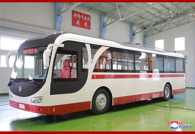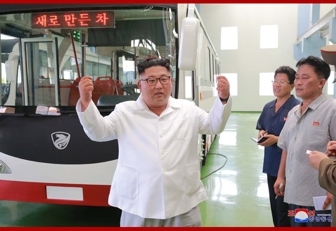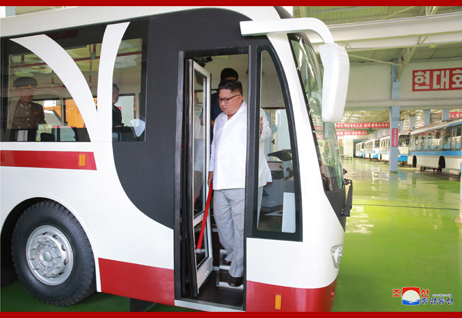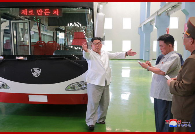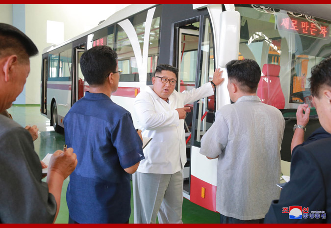 Północnokoreański przywódca odwiedził też fabrykę trolejbusów, by zobaczyć nowo wyprodukowany trolejbus. Jak stwierdził, pojazd jest pozbawiony wad. Kim Dzong Un docenił znaczący postęp, jaki dokonał się w ostatnim półroczu, jeśli chodzi o precyzję zagięć, stopień równości i płaskości bocznych ścian czy jakość produktów gumowych. Lider zapoznał się też z informacjami o postępie we wdrażaniu drugiej fazy programu modernizacyjnego, w tym napotkanych problemach i sposobach ich rozwiązania. Kim Dzong Un przedłożył też zadanie: fabryka ma stać się wzorcowym zakładem produkcyjnym w kraju, który przyczynia się do istotnej poprawy transportowej kraju.