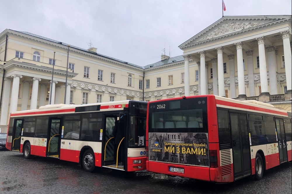 Przy okazji wydarzenia zaprezentowano dwa autobusy, które z Gdańska pojadą do Ukrainy. – Wojna trwa, przyjaciele z Ukrainy cały czas się bronią. Polskie miasta są cały czas solidarne i postawili na „drugi front”, czyli funkcjonowanie bieżące ukraińskich miast, zapewnienie usług komunalnych, które są kluczowe, żeby te miasta przetrwały. Pomoc się nie kończy. Za nami dwa autobusy z siedmiu, które będą wyjeżdżały na Ukrainę. To niejedyna pomoc – oprócz tego agregaty, sprzęt budowlany, folia, worki na piach, łopaty, szpadle, geowłóknina, stacja do uzdatniania wody, parafina do wyrobu świec okopowych. To wszystkie przedmioty, które tym konwojem trafią do miast ukraińskich – mówi Piotr Grzelak, wiceprezydent Gdańska.