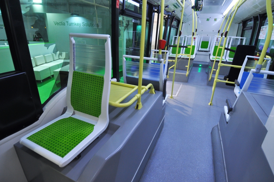 Drugim pojazdem była Vectia Veris 12 – trzydrzwiowy, całkowicie elektryczny autobus miejski. Podobnie jak w Terisie, wnętrze jest niezwykle proste i pełne plastikowym elementów. Nie sprawia to wspaniałego wrażenia, z drugiej strony – trudno przyczepić się do poziomu spasowania poszczególnych elementów pojazdu, co wciąż jest bardzo widoczne np. w pojazdach chińskich. Bardzo spodobało nam się natomiast to, że mimo konieczności montażu baterii i innych urządzeń elektrycznych, w pojeździe za wszelką cenę szukano przestrzeni dla pasażerów i znaleziono ją. Dzięki temu w pojeździe jest taka liczba miejsc siedzących, jaką normalnie znajdziemy w pojazdach z silnikiem diesla. Vectia może być ładowana zarówno na zajezdni, jak i z masztów pantografowych na końcówkach linii.