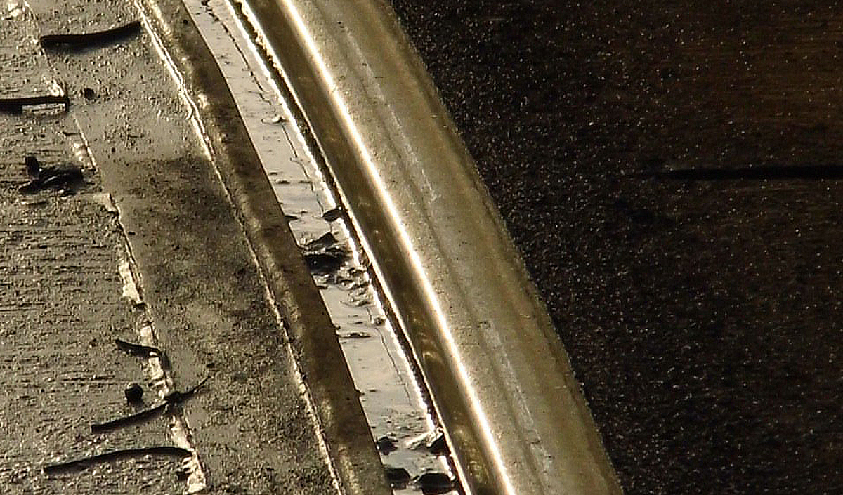 Tak zużyte są nowe szyny na omawianym łuku, fot. Dominik WójcikTramwaje w CzęstochowieCzęstochowska sieć oparta jest na infrastrukturze w kształcie – upraszczając – odwróconej litery Y i trzech liniach, z czego jedna (nr 2) to linia wspomagająca „jedynkę” na najbardziej obciążonym odcinku, będąca jej skróconym wariantem. Dotychczas częstotliwość każdej z nich wynosiła po 5 minut dla linii 1 i 2 oraz 10 minut dla linii 3, co na wspólnym odcinku dawało 5 minut, przy czym częstotliwość „jedynki” była rozrzedzona na rzecz „dwójki” z powodu złego stanu torowiska w dzielnicy Kucelin, uniemożliwiającego utrzymanie odpowiedniej prędkości, co zaś zaburzało równy takt na wspólnym odcinku. Linia 3 realizowana dziewięcioma składami obsługiwana była pięcioma wagonami 129Nb (Twist) kursującymi obok obecnych na całej sieci wagonów 105Na.