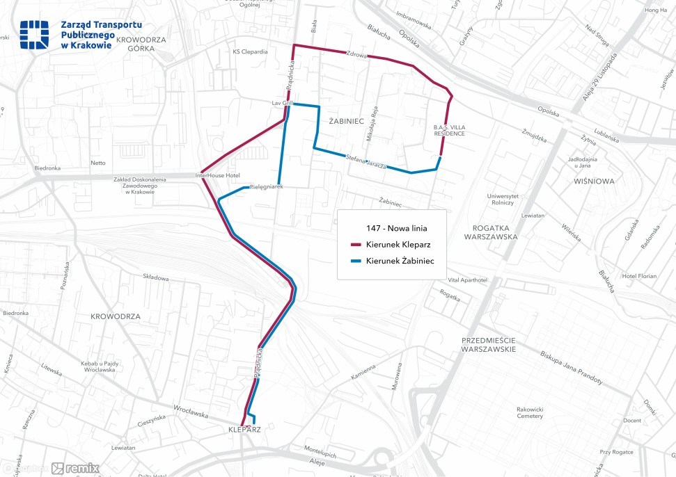 - Uruchomienie linii 147, która zapewni połączenie osiedla Żabiniec z trasą tramwajową do Górki Narodowej i z węzłem przesiadkowym Nowy Kleparz. Autobusy jeździć będą po pętli, następującymi ulicami: Lekarską, ks. Siemaszki, Stefana Jaracza, Żabiniec i Zdrową. Linia będzie kursować z częstotliwością co 10 minut w godzinach szczytu i co 15 minut poza, a w dni wolne co 20 minut.