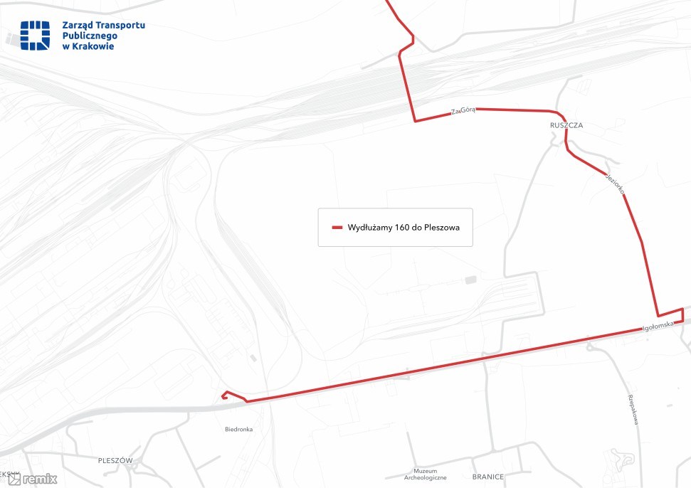 Dodatkowo, w Nowej Hucie linia 160 w dni powszednie zostanie wydłużona z Ruszczy do pętli w Pleszowie. Rozwiązanie to poprawi zarówno ofertę przewozową dla mieszkańców Ruszczy, jak i otworzy nowe możliwości dojazdu dla pasażerów z Wadowa i Łuczanowic.