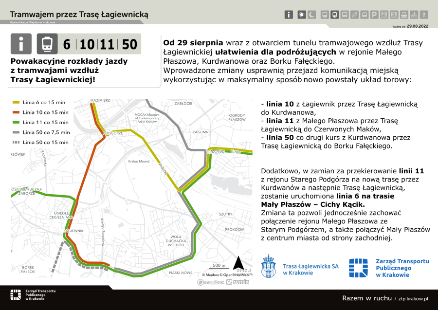 W zamian za przekierowanie linii nr 11 z rejonu Starego Podgórza na nową trasę przez Trasę Łagiewnicką, zostanie uruchomiona linia nr 6 na trasie Mały Płaszów – Cichy Kącik. Zmiana ta pozwoli jednocześnie zachować połączenie rejonu Małego Płaszowa ze Starym Podgórzem, a także połączyć Mały Płaszów z centrum miasta od strony zachodniej.