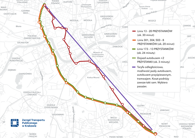 W rożnych miastach są różne zasady planowania transportu zbiorowego. W Krakowie mamy linie autobusowe przyśpieszone, przystanki na żądanie i elastyczną siatkę połączeń. Umożliwia ona podróżowanie do tego samego miejsca różnymi liniami i po innej trasie. Dlatego miasto proponuje dodatkowy bilet odcinkowy, który uzupełni obowiązującą taryfę. Z proponowanej taryfy będą korzystać tylko ci pasażerowie, którzy ją wybiorą, bo uznają, że jest dla nich opłacalna.