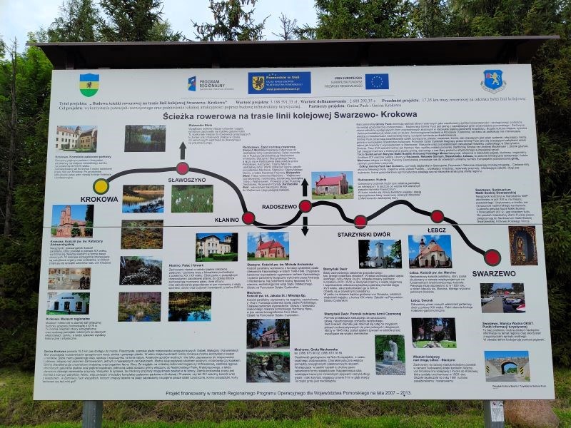 Jadąc drogą rowerową z Krokowej do Swarzewa, trudno nie zwrócić uwagi na pozostałości infrastruktury kolejowej. Wprawdzie po szynach nie ma śladu, jednak sposób ukształtowania terenu jednoznacznie wskazuje na cel, jakiemu pierwotnie służyły nasypy, wykopy czy jedyny wiadukt nad drogą lokalną. Choć na dawnej stacji w Krokowej nie widać choćby resztek zlikwidowanej jeszcze podczas okupacji parowozowni – zarówno budynek dworca (dziś zamieszkany), jak i pobliski budynek mieszkalny dla kolejarzy (niestety mocno zaniedbany) zachował wiele cech pierwotnego wyglądu. Na miejscach po przystankach można dostrzec tablice z ich nazwami (niektóre sprawiają wrażenie ustawionych jeszcze w czasach kursowania pociągów), a gdzieniegdzie – także pozostałości peronów i ramp.