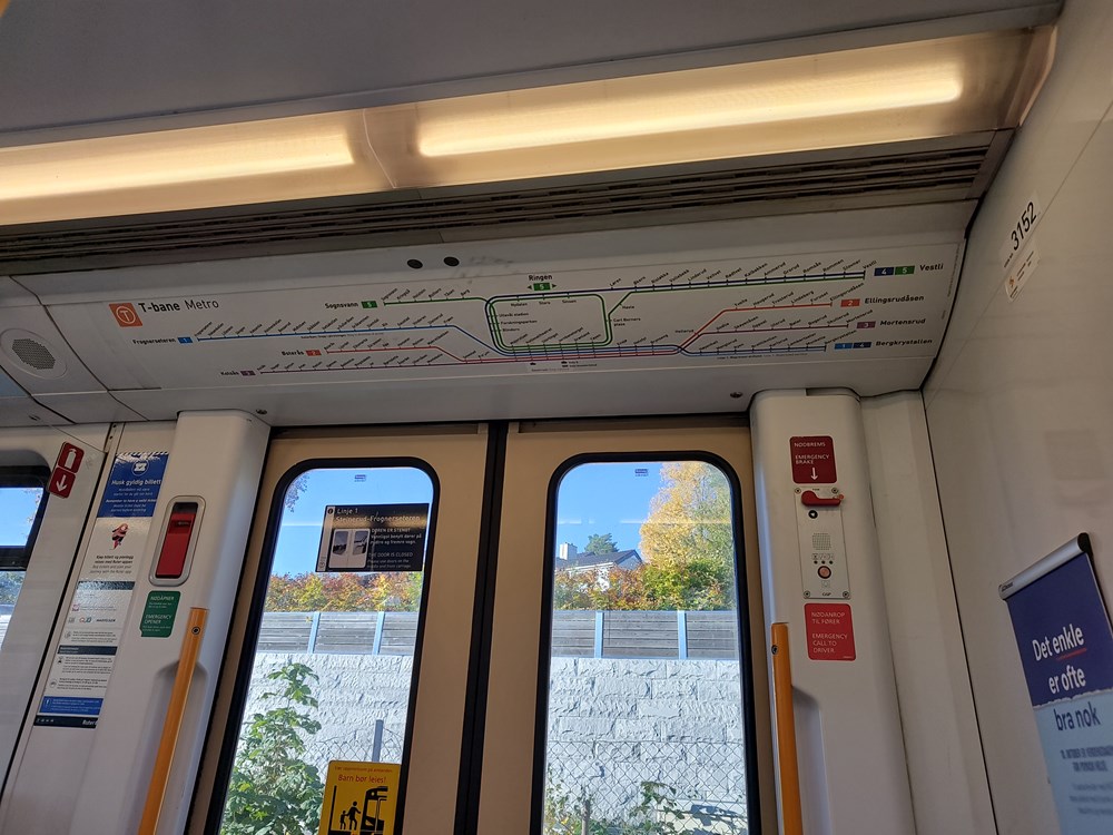 System metra w Oslo - T-Bane - składa się z pięciu linii. W centrum miasta wszystkie prowadzone są w podziemnych tunelach, natomiast na peryferiach wyjeżdżają na powierzchnię. Wśród nich jedyny w swoim rodzaju przypadek stanowi linia nr 1, pamiętająca czasy sprzed I wojny światowej.
